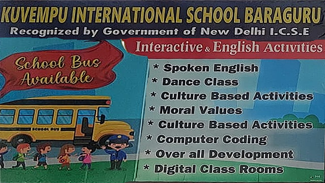 1987ರಲ್ಲಿ ಸ್ಥಾಪಿತವಾದ ಕುವೆಂಪು ಅಂತಾರಾಷ್ಟ್ರೀಯ ಶಾಲೆ ಉತ್ತಮ ಶಿಕ್ಷಣ, ಶಿಸ್ತು ಮತ್ತು ಸಂಸ್ಕಾರಗಳೊಂದಿಗೆ ವಿದ್ಯಾರ್ಥಿಗಳ ಅಭಿವೃದ್ಧಿಗೆ ಒತ್ತು ನೀಡುತ್ತದೆ.